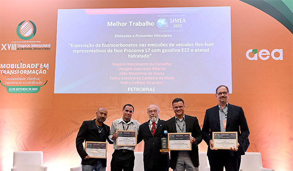 27/10/2025 – Durante o XVIII Simpósio Internacional de Lubrificantes, Aditivos e Fluidos, promovido pela AEA – Associação Brasileira de Engenharia Automotiva, ocorrido na última quarta-feira, 22 de outubro, foram entregues os prêmios aos melhores trabalhos técnicos apresentados no SIMEA 2025 (Simpósio Internacional de Engenharia Automotiva). A cerimônia marcou o encerramento do simpósio e celebrou a excelência científica e a inovação da engenharia automotiva brasileira.